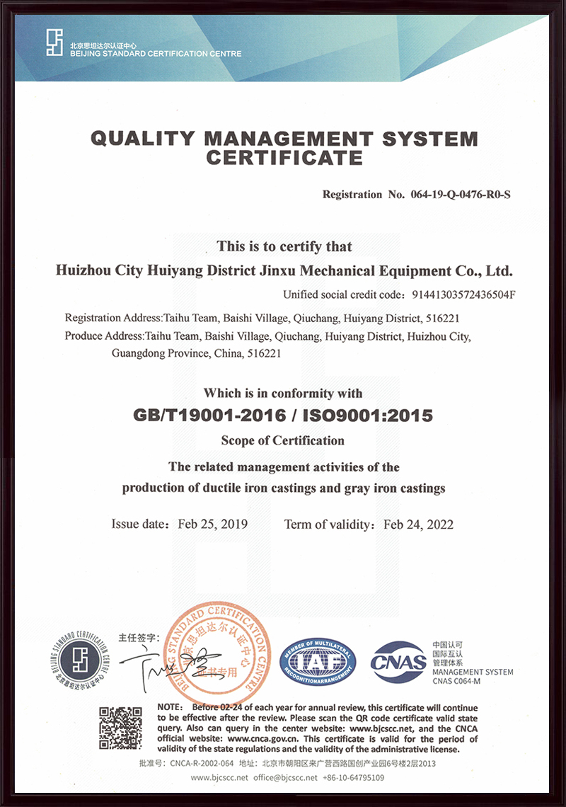 惠州市惠陽區(qū)金旭機(jī)械設(shè)備有限公司(原名深圳金泉鑄造廠),始建于1992年2月,公司坐落于惠州市惠陽區(qū)秋長白石大湖工業(yè)區(qū),是一家集模型、鑄造、機(jī)械加工于一體的綜合型企業(yè),主要生產(chǎn)高強(qiáng)度高韌性球墨鑄鐵、灰鑄鐵及鑄銅、鑄鋁等各種材質(zhì)及牌號鑄件。
